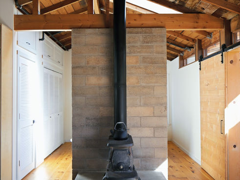 Interior space was divided by the use of new rammed earth block walls that were strategically located to act as thermal mass for passive heating and cooling and providing interior privacy.